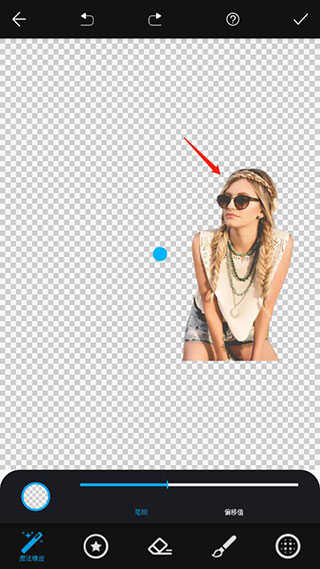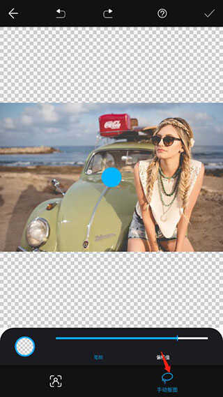 4、将人物抠出后,如果还有不满意的地方可以在下方找到抠图工具调整,没有问题后点击右上角的对钩导出保存即可。