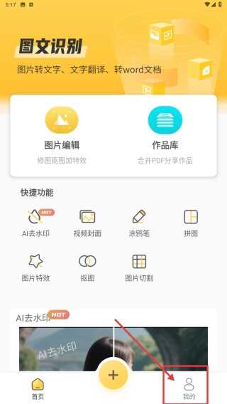 1、打开(dakai)图文识别应用,点击(click)底部我的选项,进入个人(ren)中心页面。