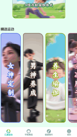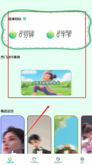1、在这里大家可以看到很多精选运动,选择俺需要的来练。