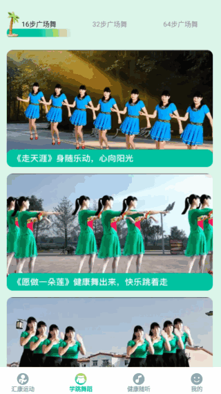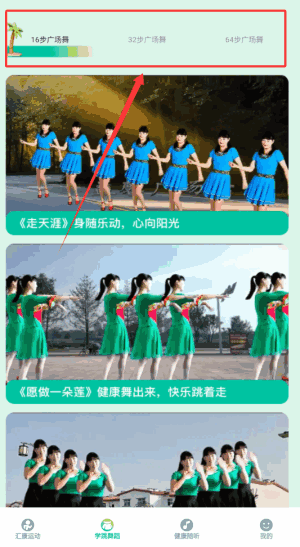 2、在学跳舞蹈模块,则能看到很多热门广场舞。