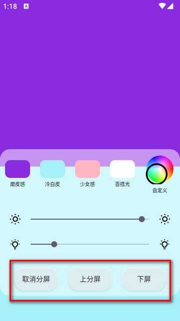 2、软件支持自由调节光线亮度,并提供分屏功能,满足多样化补光需求。