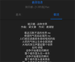 在播放页面中,在文件信息对话框可以将歌词显(xian)示(shi)为文本样式。