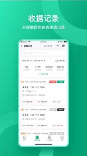 3、收据记录:将开收据进行了同步(bu)记录,进入到收据记录中心就能查看到记录的收据内容。