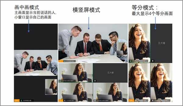 8、布局切换:手指(shouzhi)左右滑动切换画面布局。指定画面:双击画面,显示指定窗口大画面,再次双击回到原布局(仅影响自己的设备)。横竖屏切换:根据手机横屏竖屏摆放自动切换(与系统竖屏锁定关联);