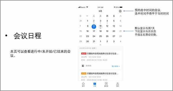 6、会议日程可以查看进行中/未开始/已结束的会议;