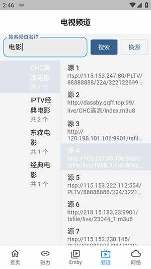 3、然后点击源,即可播(bo)放,播(bo)放失败就一直手动换。