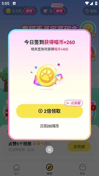 2、彶溡领(ling)取(qu)左侧的喵币,可以用于兑换现金