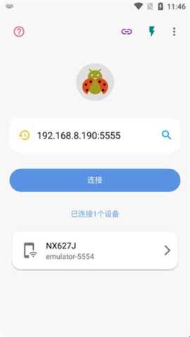 4、此时,我们在新的设备上打开甲壳虫ADB助手,输入被控机的IP地址和端口,就可以连接到手机设备了。