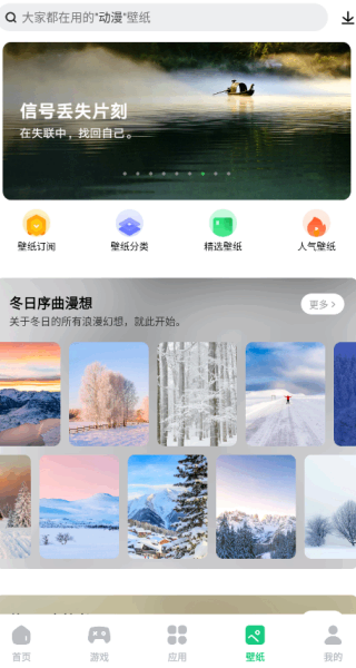 2、在壁纸板块,我们能够看到很多精选壁纸,喜欢的话可以直接下载或者设置;