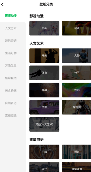 3、还可以点击壁纸分类,通过分类筛选自己喜欢的壁纸,然后点击进入预览界面;