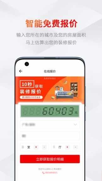 输入您所属的大城市及您的房子总面积,立刻估计出您的装修价格