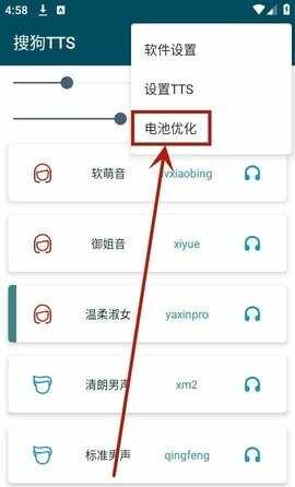 9.在软件主界面可以选择各种不同的语音,直接点击能够切换,右边的耳机可以进行试听