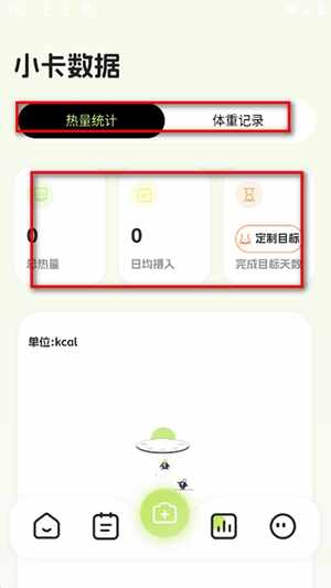 3、点击小卡数据,可记录每日热量/体重等。