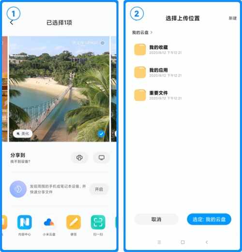 第一种是在小米云盘APP内上传,打开云盘后选择“上传”,勾选本地文件即可同步至云端,适合整理手机内零散文件;第二种是从其他APP发送,在外部APP打开文件后,通过“分享”选择小米云盘,快速完成文件传输。
