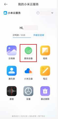 【注】访问时所用的“小米账号”必须和丢失设备登录的账号相同,否则在设备选择列表上无法找到该设备。